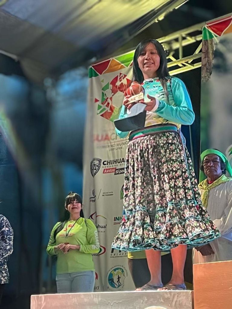 Palma Cruz ganó presea dorada en los Juegos Mundiales Máster de Pueblos Indígenas 2023 efectuados en Ottawa, Canadá y es conocida por su estilo de correr usando la falda rarámuri que refleja la presencia de las mujeres en el ámbito deportivo internacional.