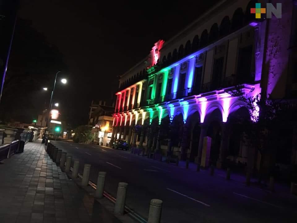 Además se iluminó el palacio municipal con los colores rojo, naranja, amarillo, verde, azul y púrpura, en el marco del mes del orgullo LGTBQ+.