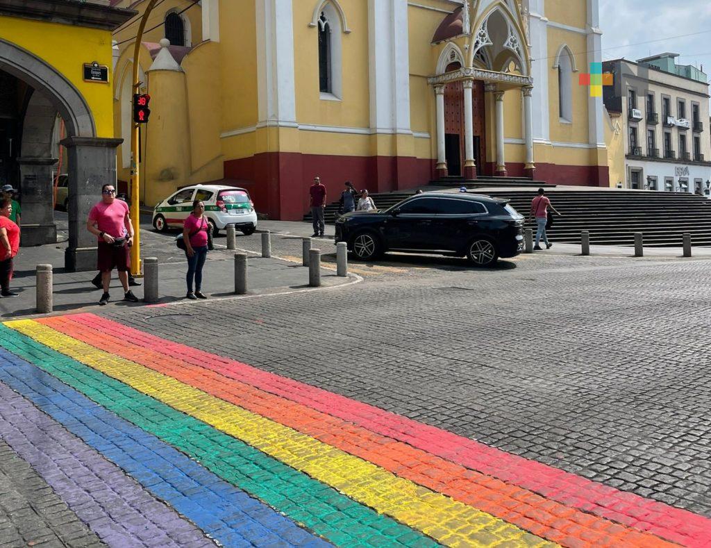 Es de hacer mención que colectivos llegaron a un acuerdo en la administración municipal pasada para que cada año en el mes de junio se pinte el paso peatonal ubicado en la calle Enríquez esquina con Revolución en contra esquina de Palacio de Gobierno.