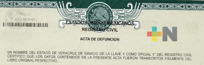 El primer paso de acuerdo a la oficial del Registro Civil de Coatzacoalcos, Fabiani Cueto Salinas, es la expedición del certificado de defunción dado que es un requisito indispensable para tramitar el acta.