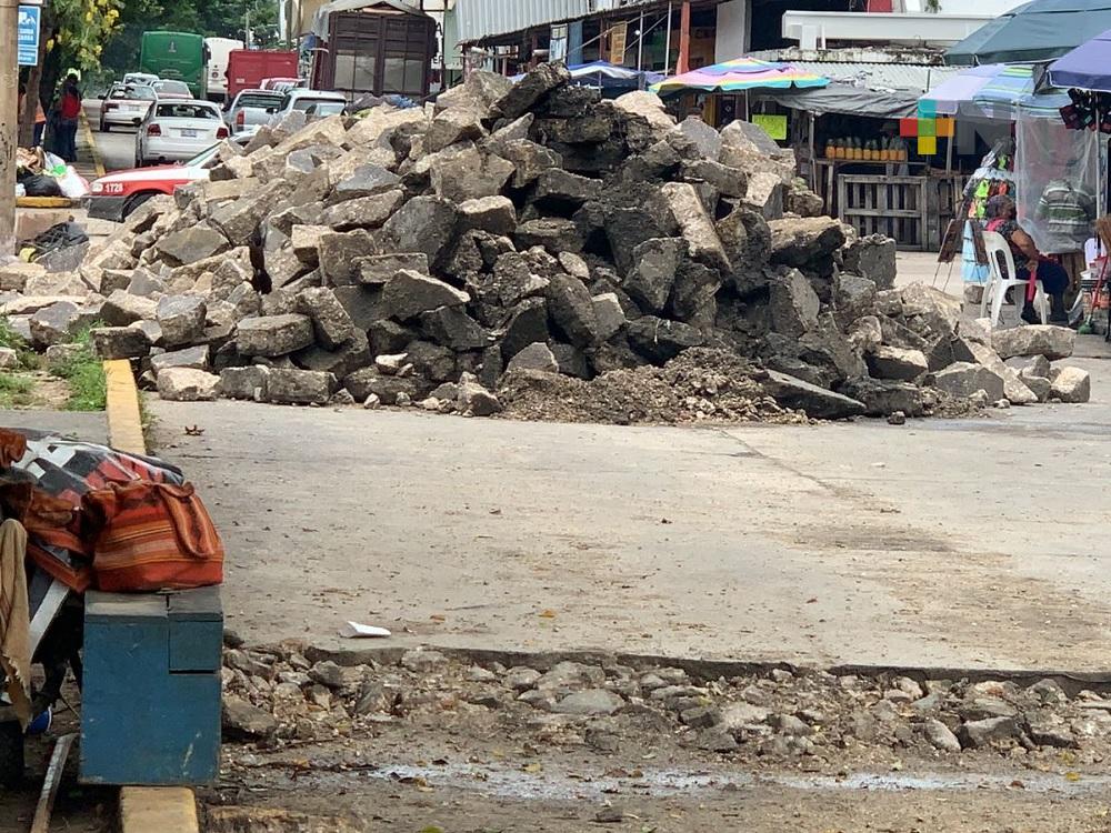Comerciantes pidieron a la Secretaría de Obras Públicas agilice las tareas, pues tienen problemas para descargar la mercancía.