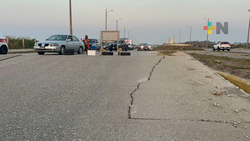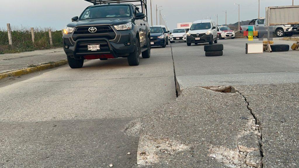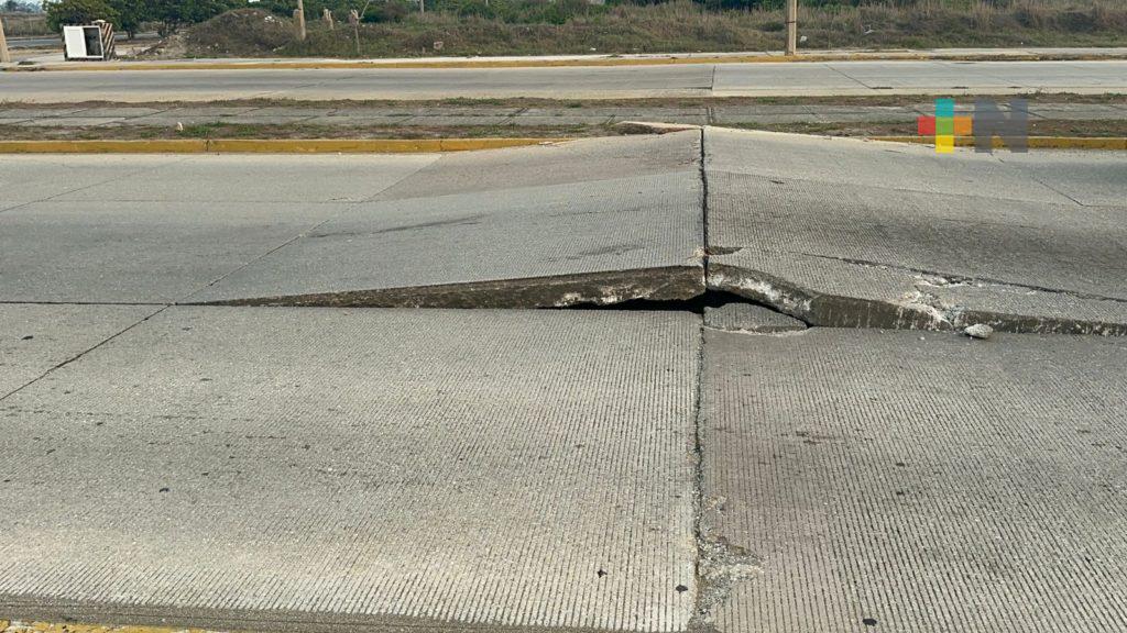 Pavimento fracturado en malecón de Coatzacoalcos