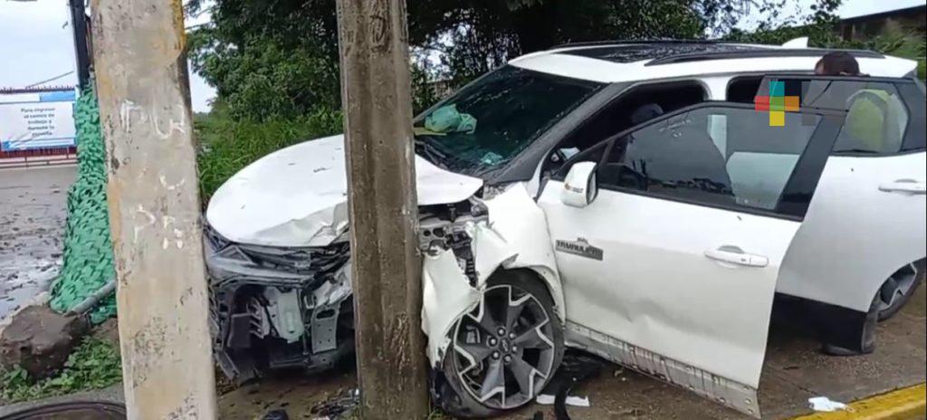 Posteriormente sobre la carretera Transístmica una camioneta se estrelló contra otro poste dejando una persona lesionada a la altura de la colonia Tierra Nueva.