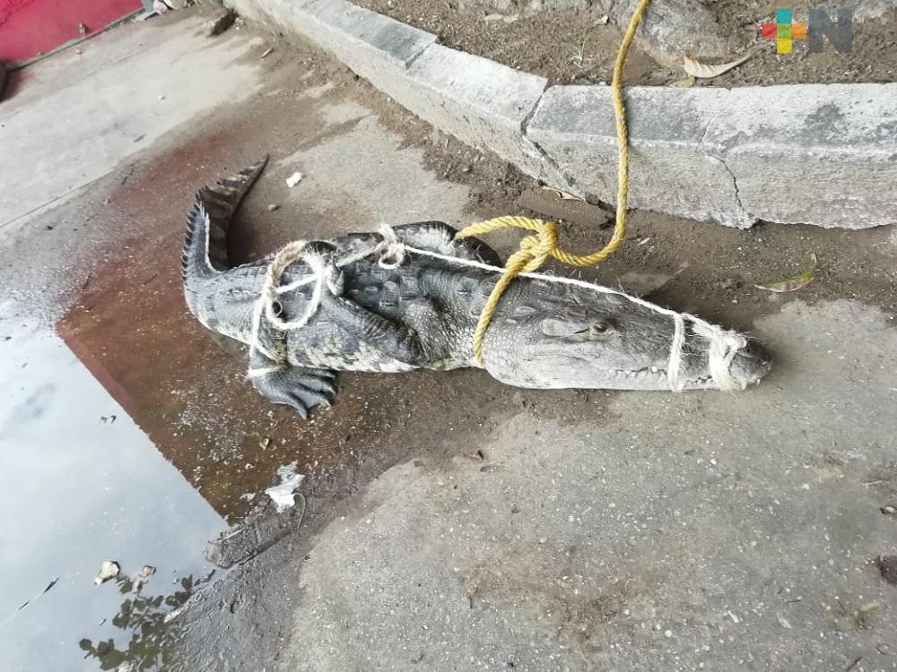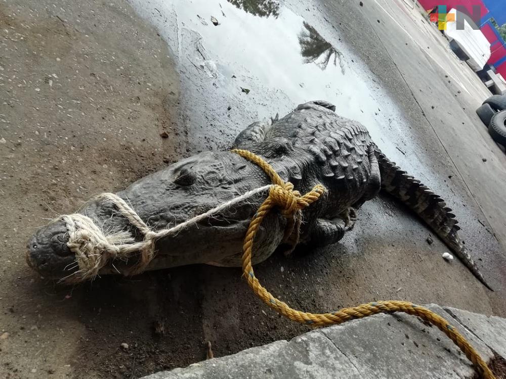 PC Coatzacoalcos captura a cocodrilo de casi dos metros