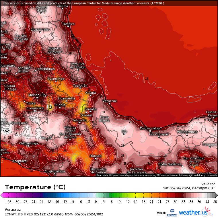 SISTEMAS METEOROLÓGICOS Y SU PREVISIÓN: En los siguientes días se espera se estacione una alta geopotencial en 500 hPa (5800 msnm) sobre México y genere un “Domo de Calor” al atrapar el calor atraído por los sistemas de baja presión que dominarían en superficie, situación que crearía una “Ola de Calor”, la cual afectaría a estados del Noreste, Este y Sureste significativamente, entre ellos el estado de Veracruz, donde los días más críticos se tienen estimados sean martes, 7, miércoles 8, jueves 9 y viernes 10. Las condiciones anteriores no impide que, derivado del propio calor y la orografía, se rompa la subsidencia que caracteriza al domo, manteniéndose la probabilidad de lluvias y tormentas vespertinas a nocturnas aisladas en montañas de la entidad. Se recomienda extremar las precauciones pertinentes.