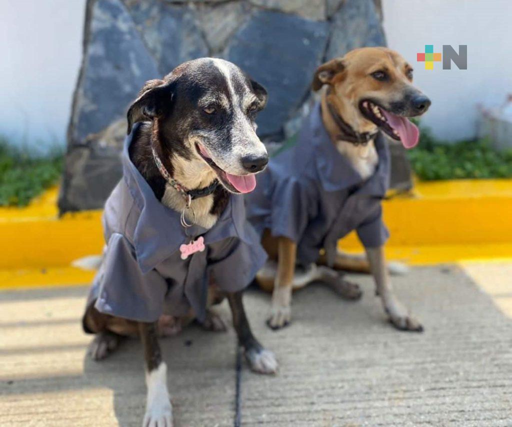 Coatzacoalcos, Ver.- En Coatzacoalcos, perritos callejeros se convirtieron en empleados distinguidos de una gasolinera que los vistió con el uniforme de los despachadores.