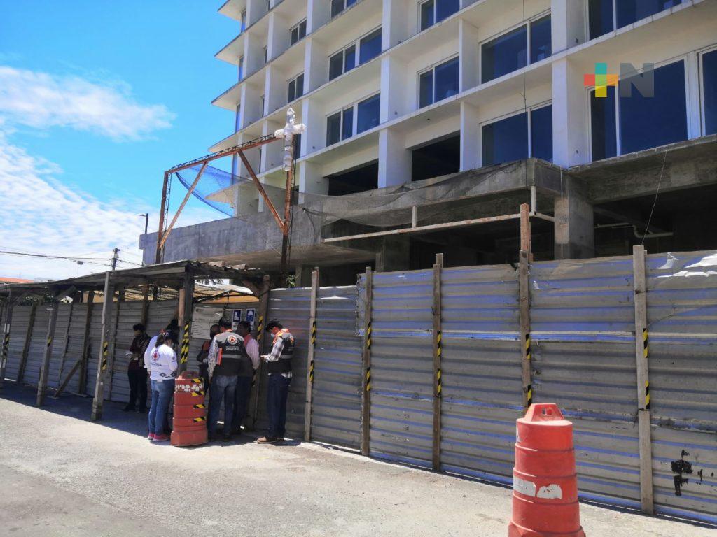 La mañana de este jueves personal de la Secretaría de Protección Civil acudió al sitio de obra de la denominada Torre Centro, ubicada en la calle de Arista del Centro Histórico de Veracruz para entregar una notificación a los responsables del proyecto.