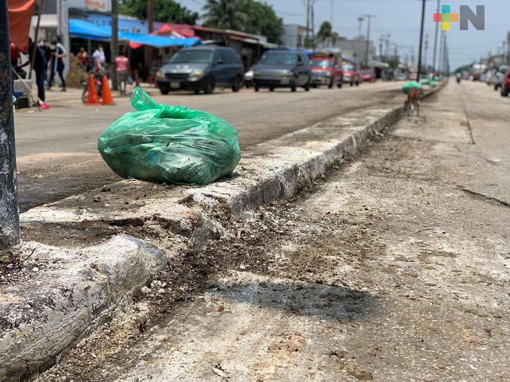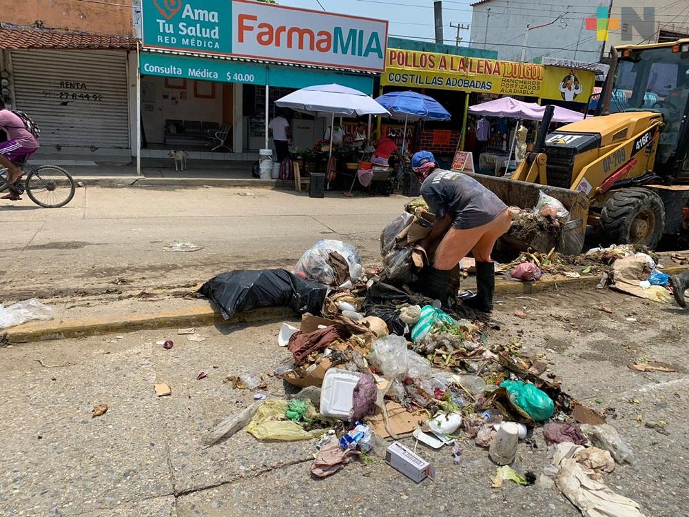 Coatzacoalcos, Ver.- Derivado del cierre del basurero de Villa Allende y su reciente apertura por parte de autoridades municipales, varios puntos de Coatzacoalcos quedaron llenos de desechos, por lo que personal de limpia pública realizó una jornada masiva de recolección de residuos de las calles.