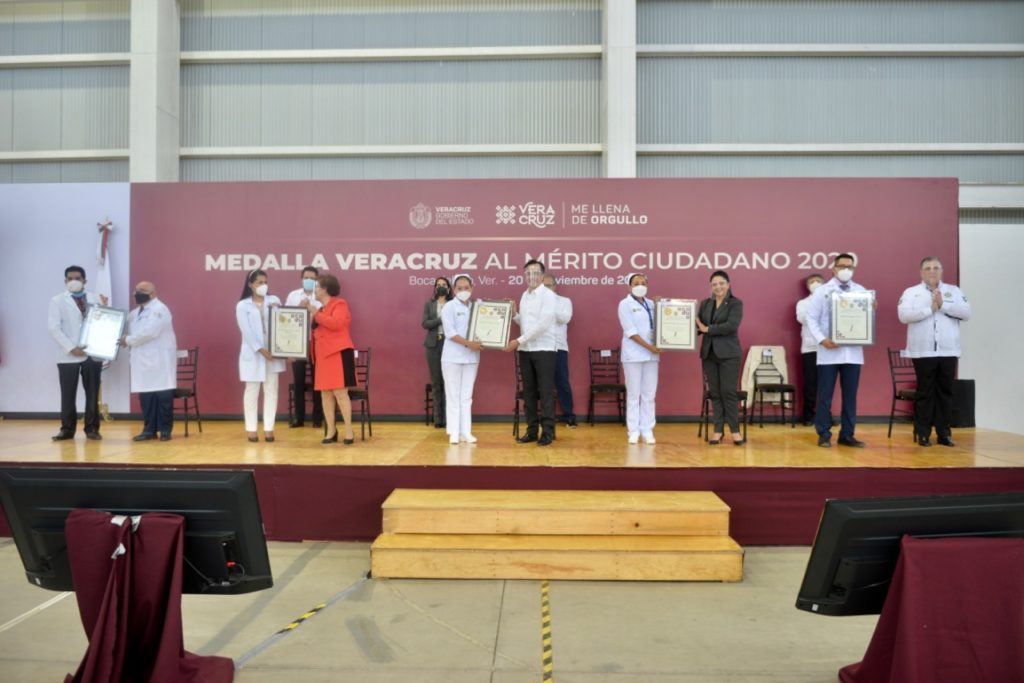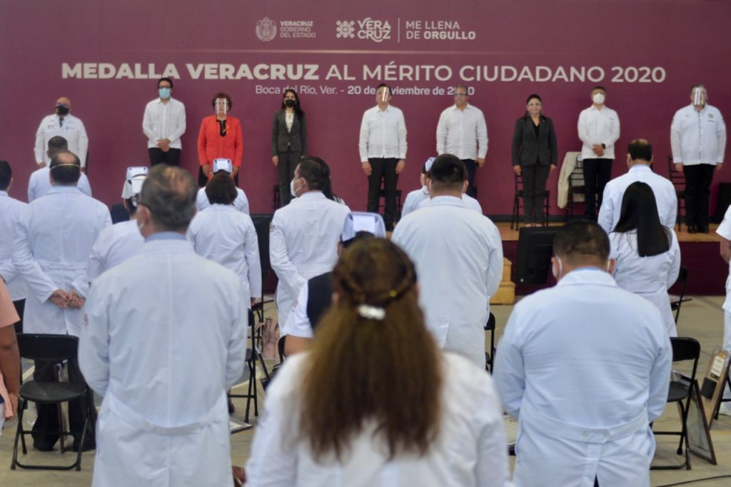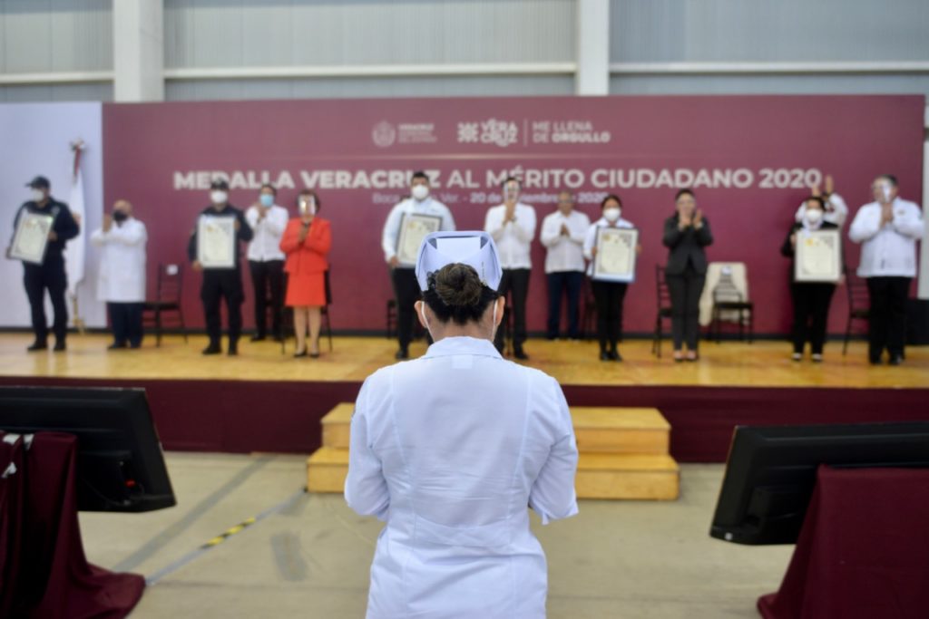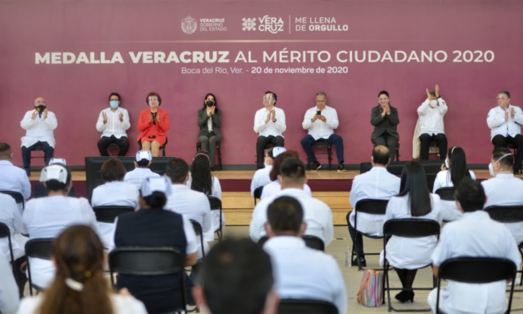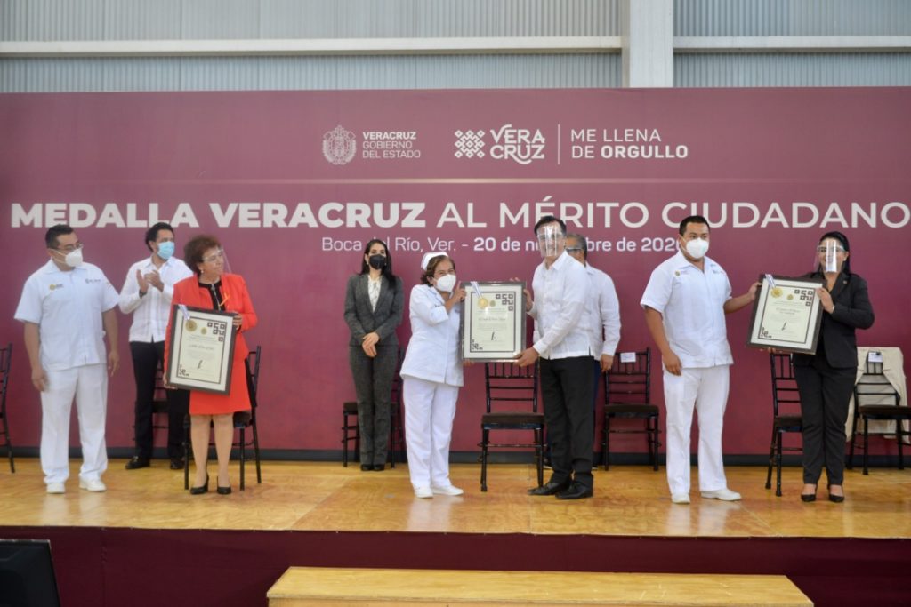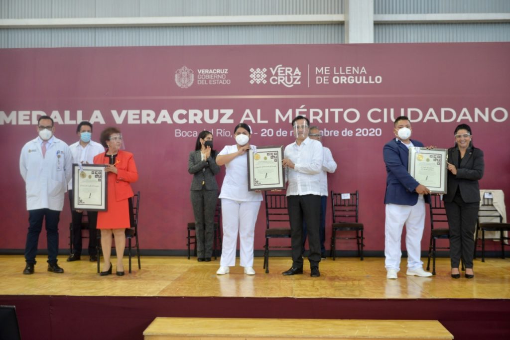 Boca del Río, Ver.- A poco más de un año del primer caso de COVID-19 en el mundo, el gobernador Cuitláhuac García Jiménez celebró que entre las dificultades causadas por la pandemia hayan surgido la solidaridad, el compromiso, la responsabilidad y el actuar digno del personal de salud, hoy distinguido con la Medalla Veracruz al Mérito Ciudadano.