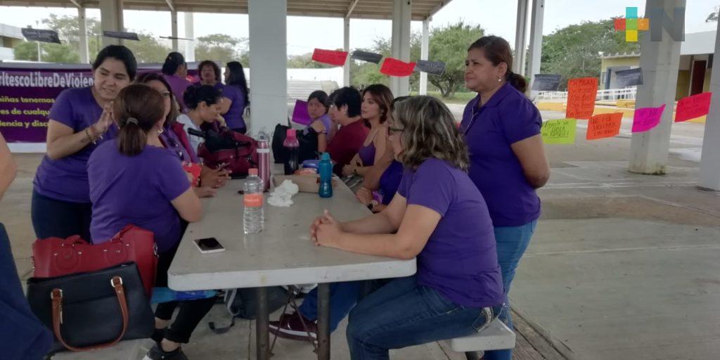Coatzacoalcos, Ver.- Con un tendedero lleno de consignas como: «Alto a la violencia» y «Que se respeten mis derechos como mujer», personal docente y administrativo femenino del Instituto Tecnológico Superior de Coatzacoalcos, realizaron una manifestación pacifica en el patio central de la escuela.