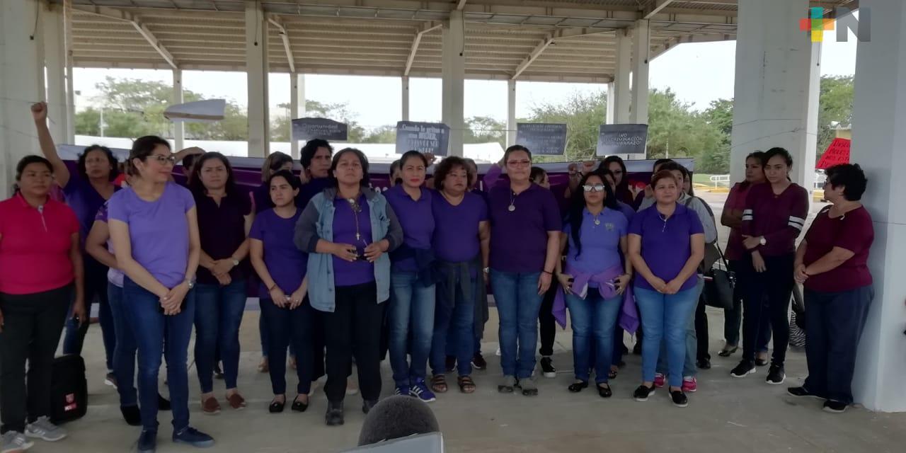 Coatzacoalcos, Ver.- Con un tendedero lleno de consignas como: «Alto a la violencia» y «Que se respeten mis derechos como mujer», personal docente y administrativo femenino del Instituto Tecnológico Superior de Coatzacoalcos, realizaron una manifestación pacifica en el patio central de la escuela.