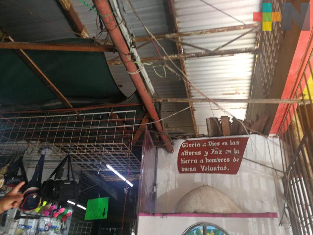 Coatzacoalcos, Ver.- Tras la manifestación de locatarios del Mercado Plaza del Sol, personal de la Dirección de Mercados acudió a verificar las condiciones del centro de abasto, comprometiéndose a que la Dirección de Obras Públicas presupueste el material necesario para cambiar parte del techo.