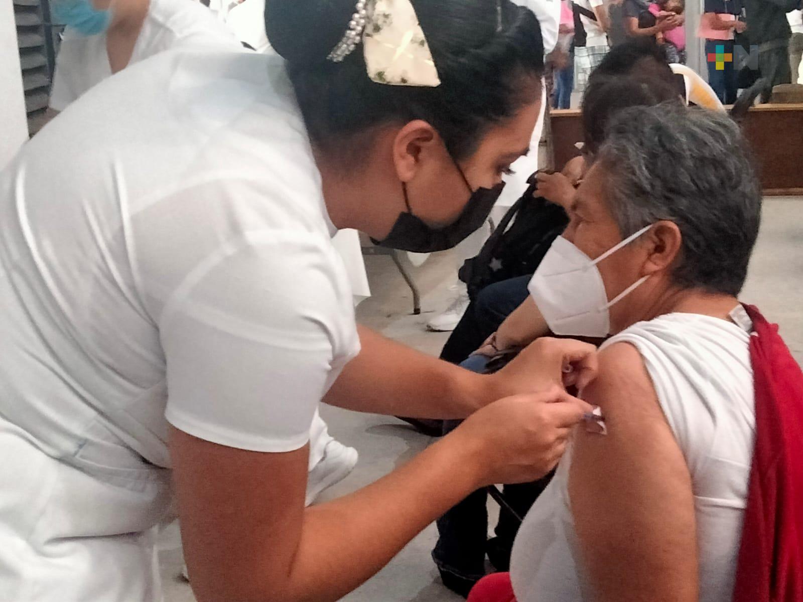 Xalapa, Ver.- Por primera vez o para recibir alguno de los refuerzos y completar su esquema de vacunación, personas de 18 años en adelante y adolescentes que este año cumplen 15 y de 12 en adelante con alguna comorbilidad, acuden al módulo de vacunación polivalente instalado en el Gimnasio Omega, en Xalapa, como parte de la estrategia “Más vale tarde que nunca”.