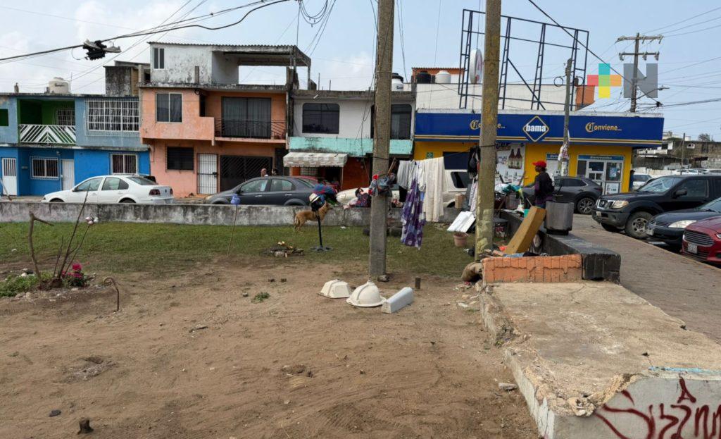 Coatzacoalcos, Ver.- Por enésima ocasión autoridades de Coatzacoalcos retiraron residuos de personas en situación de calle que se instalaron en una jardinera de la colonia Ávila Camacho.