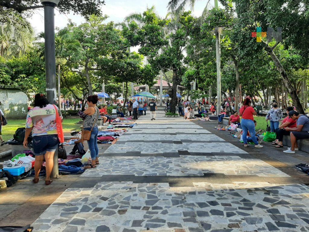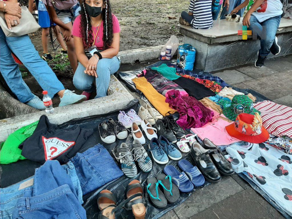 Veracruz, Ver.- Todos los lunes y jueves de cada semana de 2 a 6 y media de la tarde, más de 300 personas comercializan artículos, juguetes, ropa y calzado de segunda mano en el parque Zamora de la ciudad de Veracruz.