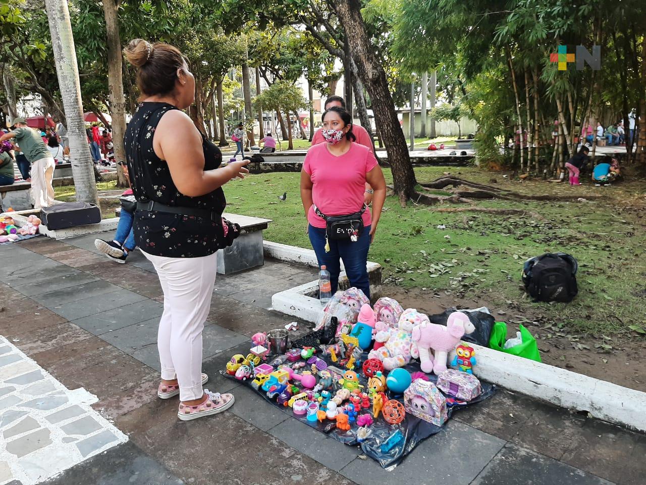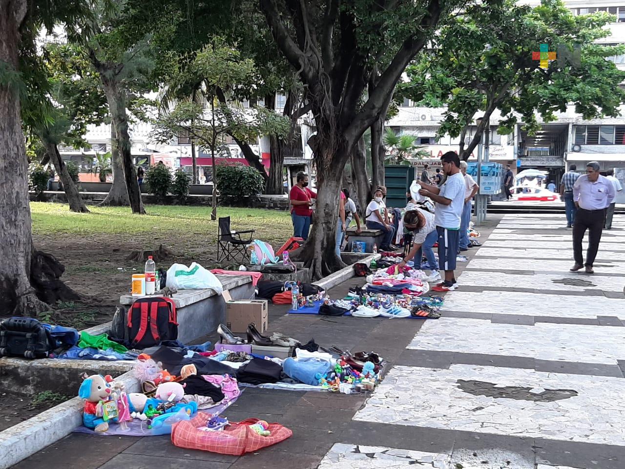 Veracruz, Ver.- Todos los lunes y jueves de cada semana de 2 a 6 y media de la tarde, más de 300 personas comercializan artículos, juguetes, ropa y calzado de segunda mano en el parque Zamora de la ciudad de Veracruz.