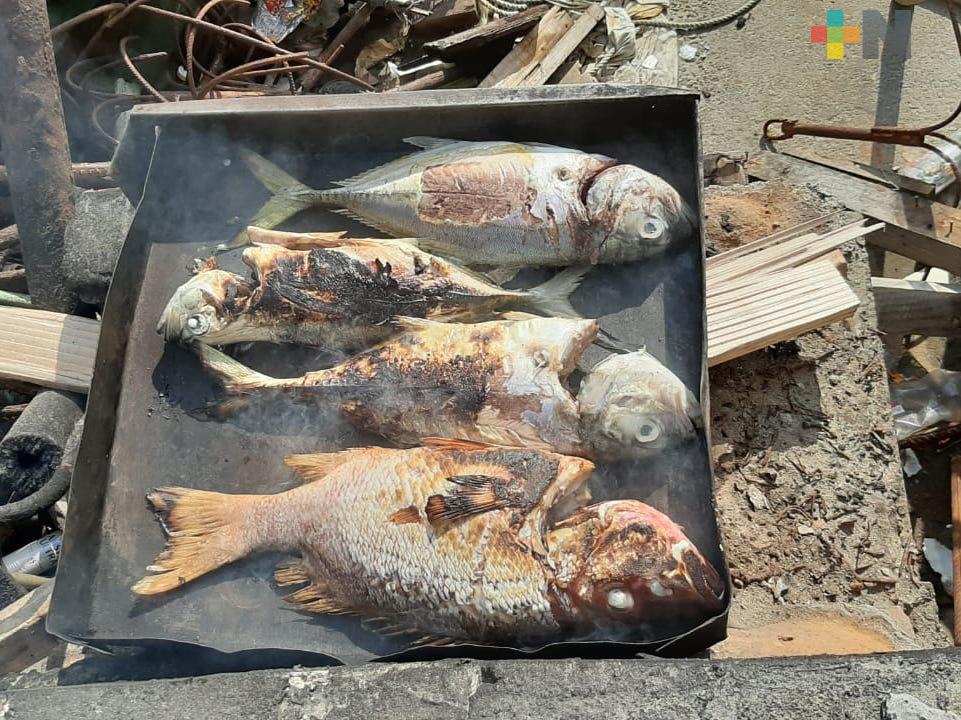 “Son una cubera, dos jureles y una cojinuda, es lo que vamos a desayunar nosotros, asado puro asado, ahorita ya vienen las tortillas”, comenta José Ventura Vargas Sánchez,  presidente de la Cooperativa de Pescadores Bajos de la Blanquilla.