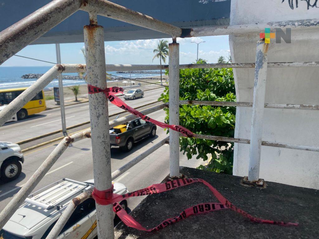 El puente peatonal Veramar se encuentra clausurado por desperfectos en los barandales, a decir de quienes transitan el área, es un peligro, pues la afluencia vehicular es constante y muchas veces manejan a alta velocidad.