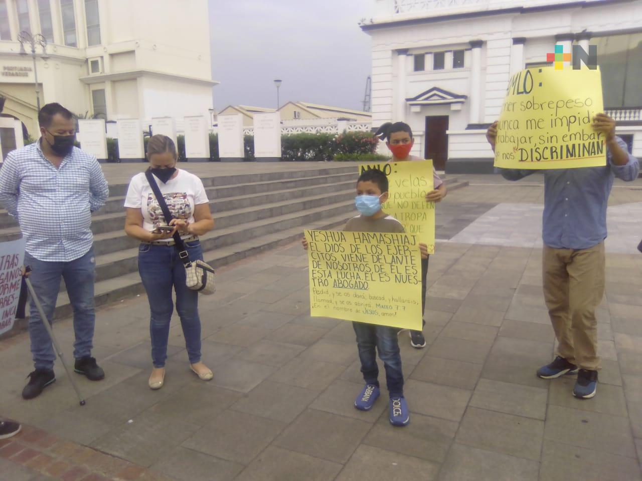Afirmó que, de entre los cinco exmarinos, que tienen entre 14 y 18 años de servicio, dos fueron dados de baja por lesiones, y los demás por discriminación debido a su sobrepeso, han acudido ya a diferentes instancias, sin resultados, acudieron a Derechos Humanos, donde, aseguró, que le dijeron que hay elementos para ganar su caso, pero por la emergencia sanitaria avanzará lento.