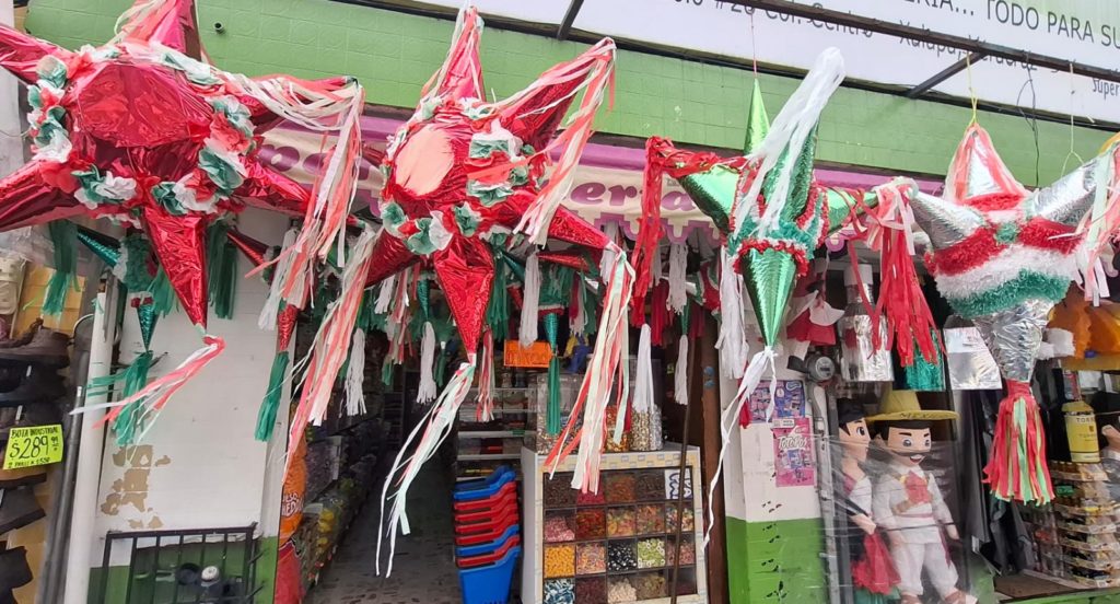 Previamente al 15 de septiembre, los piñateros surtieron las dulcerías del centro de Xalapa donde abundan también el verde, blanco y rojo.