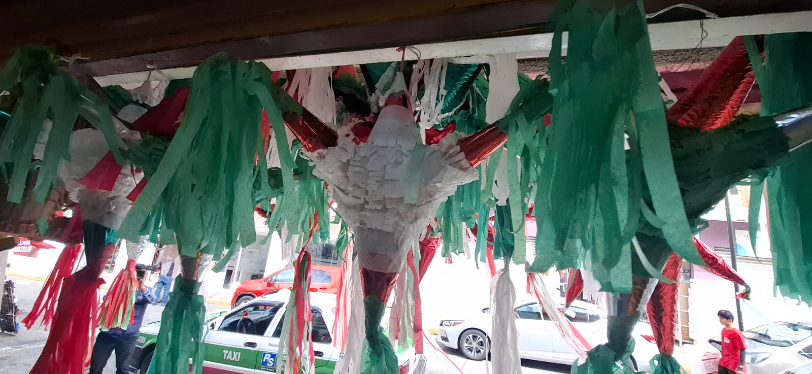 Previamente al 15 de septiembre, los piñateros surtieron las dulcerías del centro de Xalapa donde abundan también el verde, blanco y rojo.