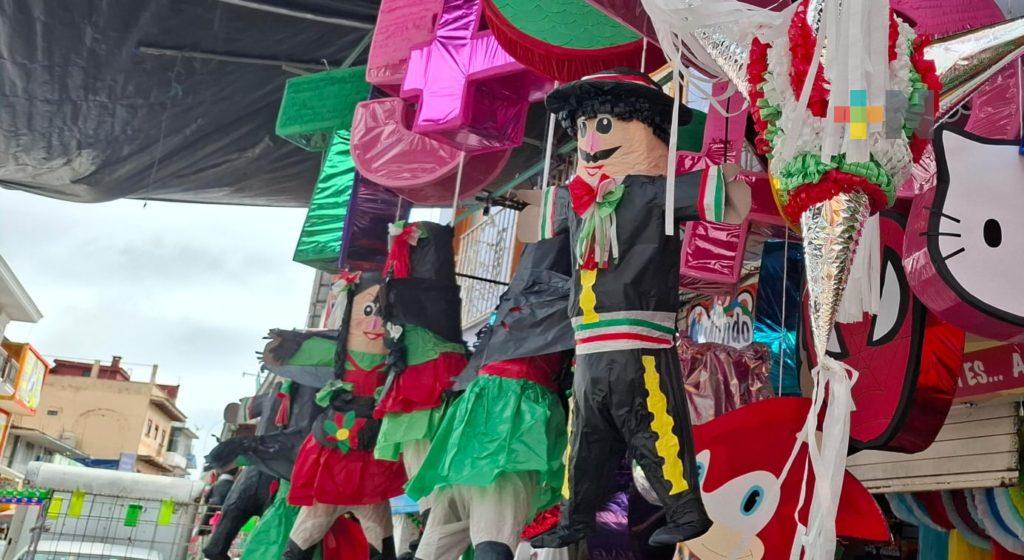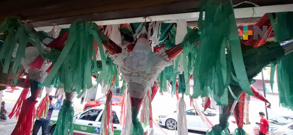 Previo al 15 de septiembre, los piñateros surtieron las dulcerías del centro de Xalapa, donde abundan también el verde, blanco y rojo.