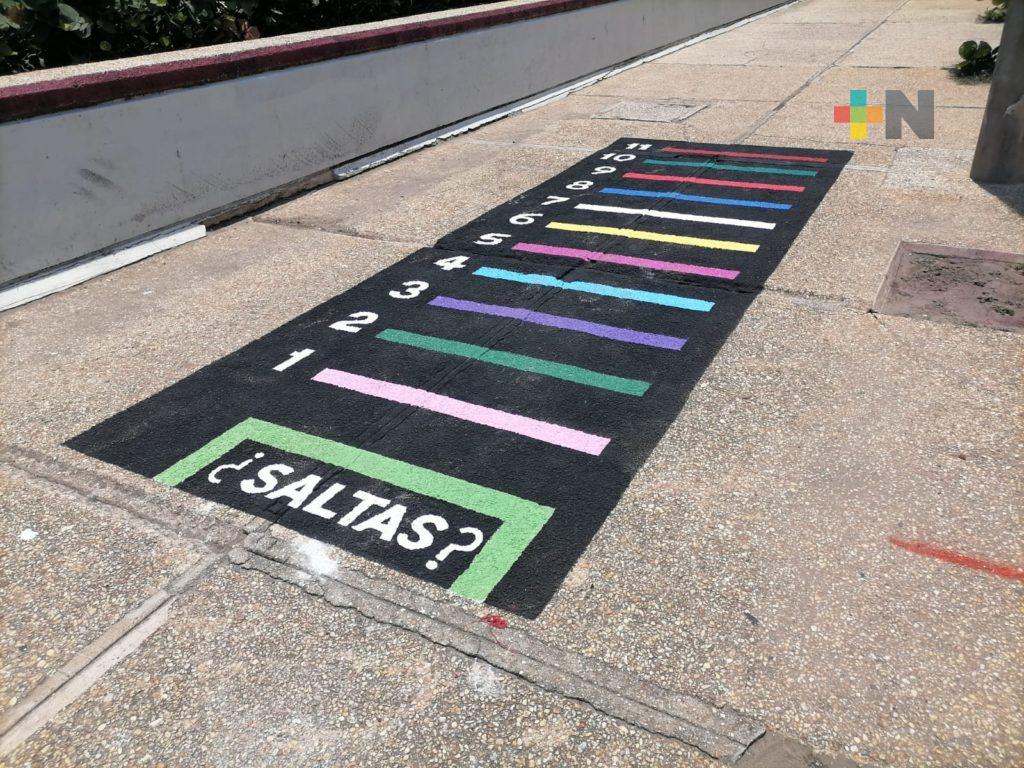 Coatzacoalcos, Ver.- Pintan en la zona del malecón costero juegos tradicionales para rescatar la práctica de este tipo de actividades recreativas y sana convivencia.