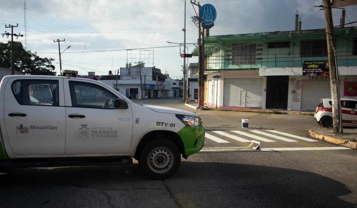 Minatitlán, Ver. – Dando cumplimiento a las instrucciones de la presidenta Municipal, Carmen Medel Palma, la jefatura de Tránsito y Vialidad continúa trabajando en el pintado de señalamientos viales en las principales avenidas de Minatitlán.