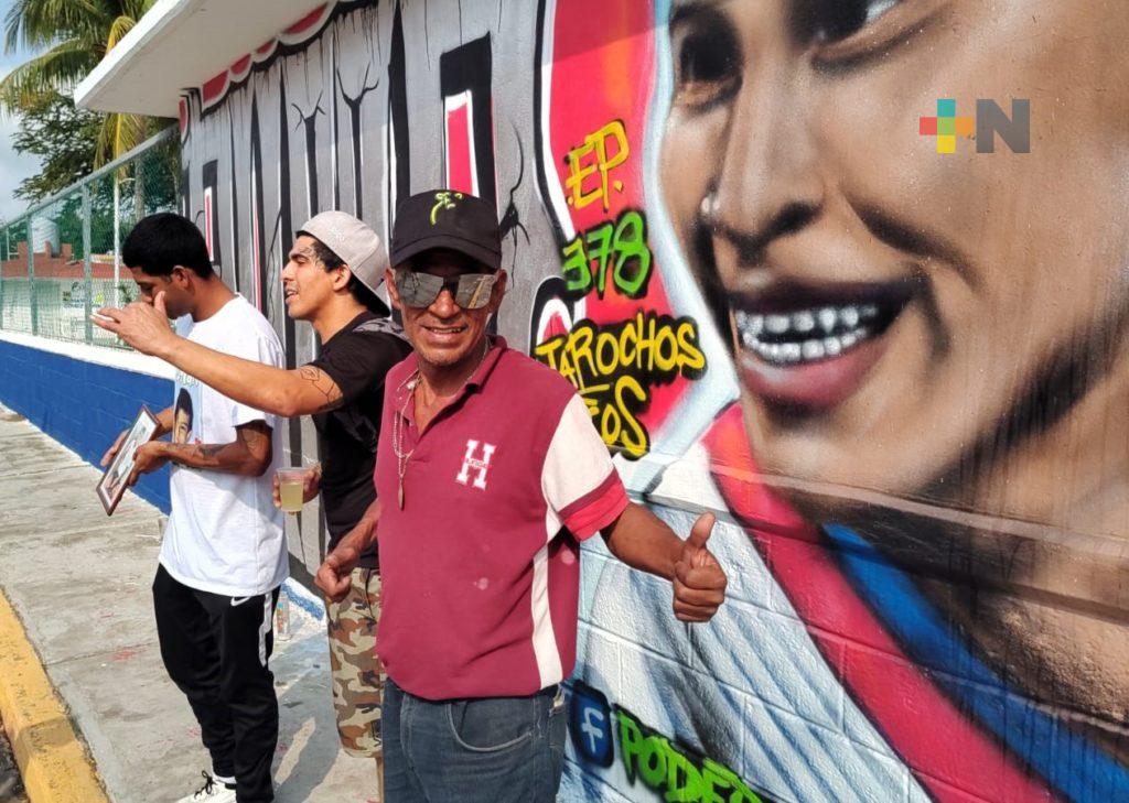 Sus amigos de la infancia mandaron a pintar en una de las bardas de la Unidad Deportiva Los Pinitos de la colonia Ejido Primero de Mayo Norte de Boca del Río, un mural en honor al futbolista veracruzano.