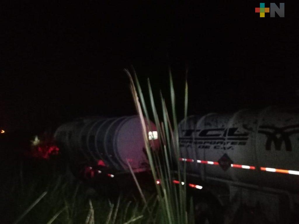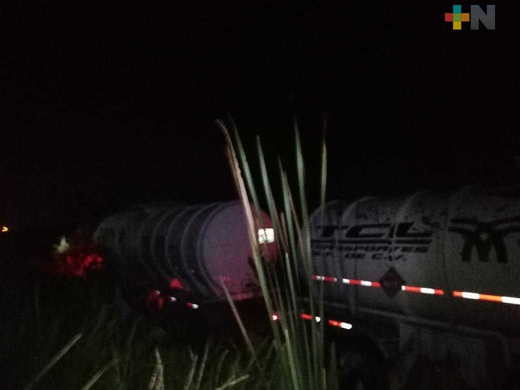 El incidente ocurrió alrededor de las 23:00 horas en el kilometro 11+200, cuando presuntamente a la pesada unidad se le atravesó otro vehículo, provocando que el chofer perdiera el control y terminara fuera de la carretera.