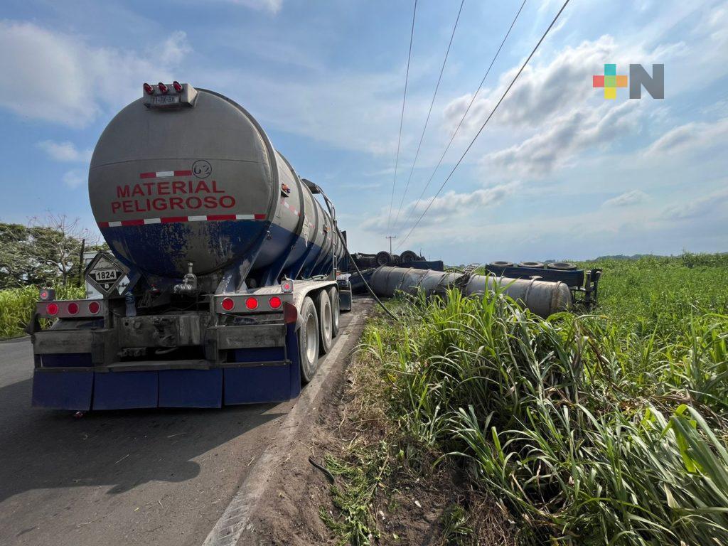 Pipa con material reciclado se volcó sobre la carretera Coatzacoalcos-Minatitlán