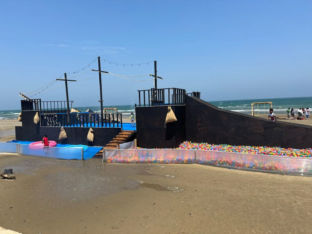 Playas de Coatza instalan atractivos para los bañistas que llegan a vacacionar