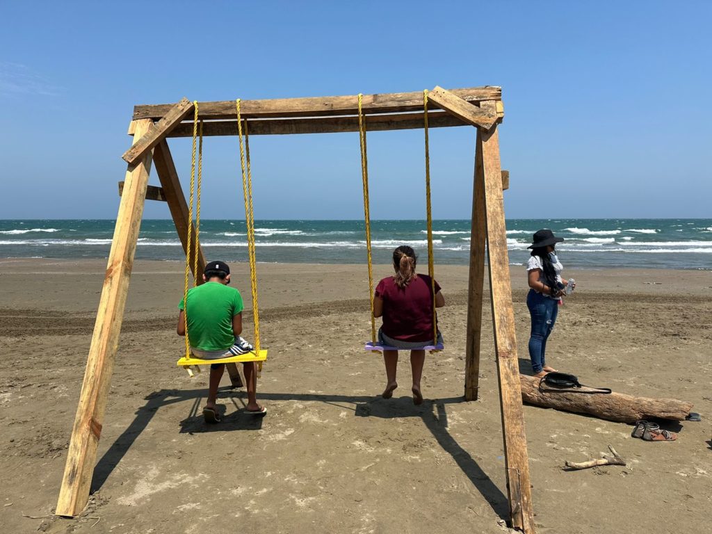 También, en ese punto se instalaron columpios de madera cercanos al mar.