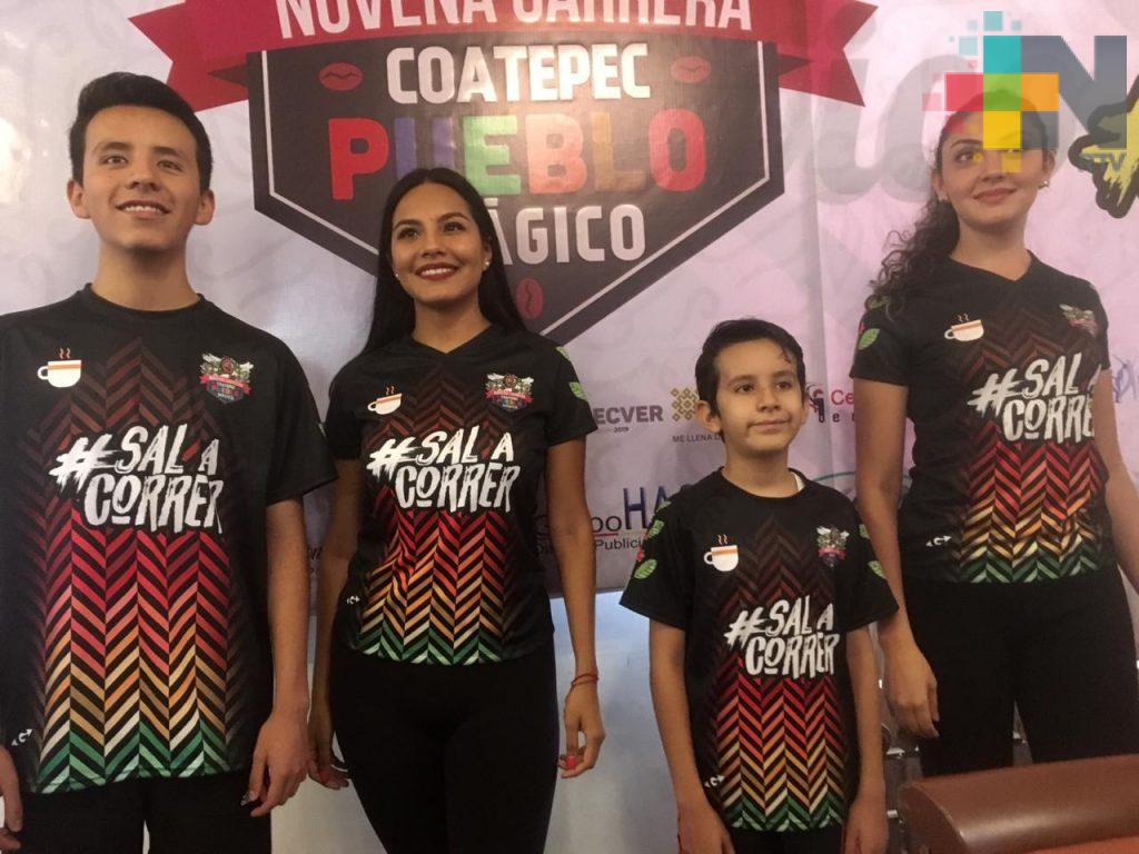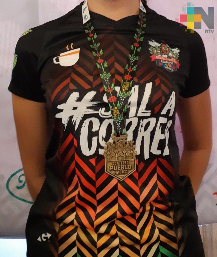 Coatepec, Ver.- Presentaron la playera que portarán los corredores inscritos a la novena edición de la Carrera Atlética Coatepec Pueblo Mágico 5, 10 k e infantiles que se correrá el próximo 4 de agosto.