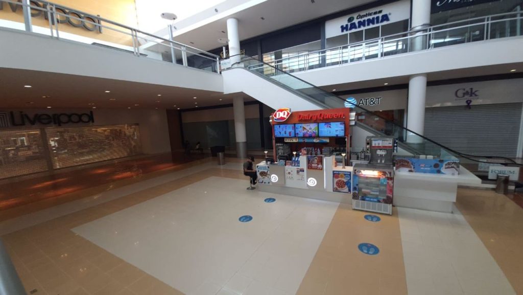 El centro comercial sigue luciendo vacío y con locales cerrados, manteniéndose abiertos solo bancos, empresas cableras y telefónicas, así como una cafetería, algunos restaurantes del área de comida y la tienda comercial de la cadena Samborns.