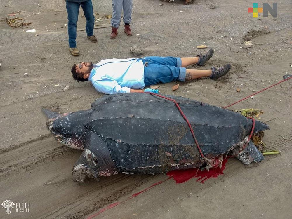 El quelonio, uno de los más grandes del mundo, fue ubicado en la costa de la Nueva Riviera Veracruzana. Se sabe que es una especia pocas veces vista en el litoral del estado de Veracruz.