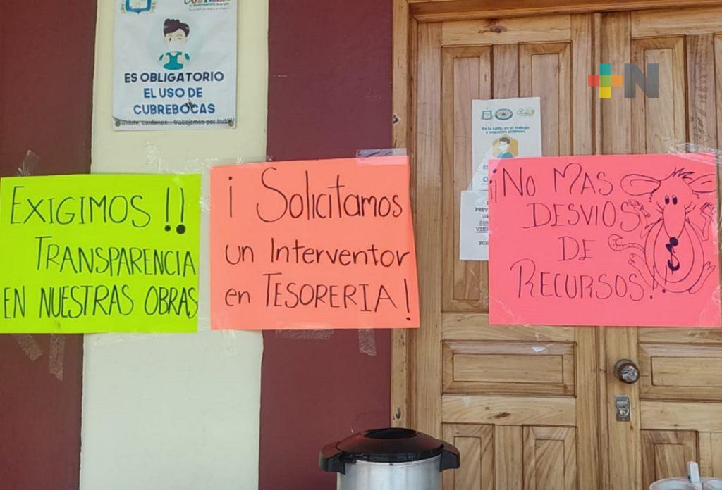 La protesta la mantienen por descontento contra la actual administración municipal, por lo que están pidiendo la intervención de los diputados locales para que sea intervenida la Tesorería y que se realice auditoría, ya que argumentan presunto desvío de recursos del presidente municipal.