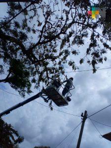 Coatzacoalcos, Ver.- Autoridades municipales, iniciaron con la poda de árboles en todas las calles del antiguo Puerto México en busca de evitar afectaciones a las líneas de energía eléctrica y telefonía, ante la eventual presencia de vientos de norte.