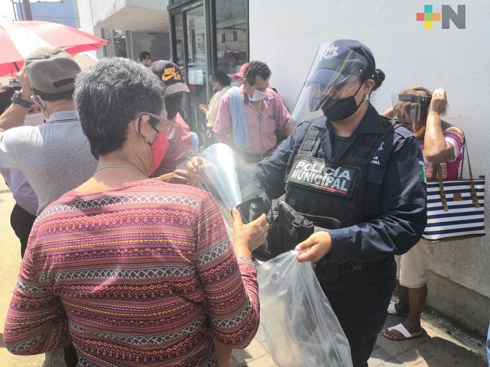 Policía de Coatzacoalcos reparte caretas a personas de la tercera edad