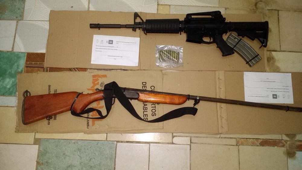 Los policías les solicitaron a los ocupantes de las camionetas mediante el uso del altavoz que detuvieran su marcha; metros adelante policías le dieron alcance a una camioneta en la que había un arma larga color negra y un equipo de radio comunicación.