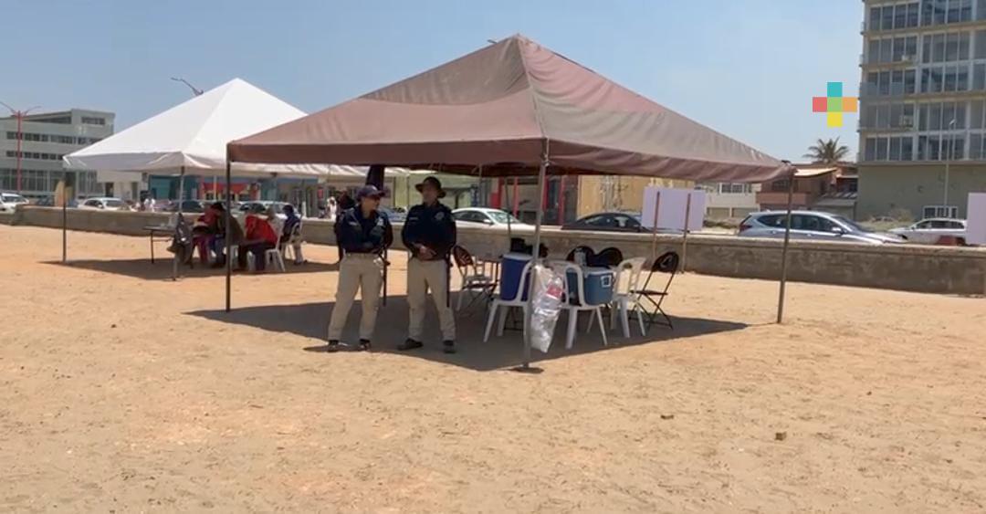 Policía municipal brinda ayuda a turistas en playas de Coatza