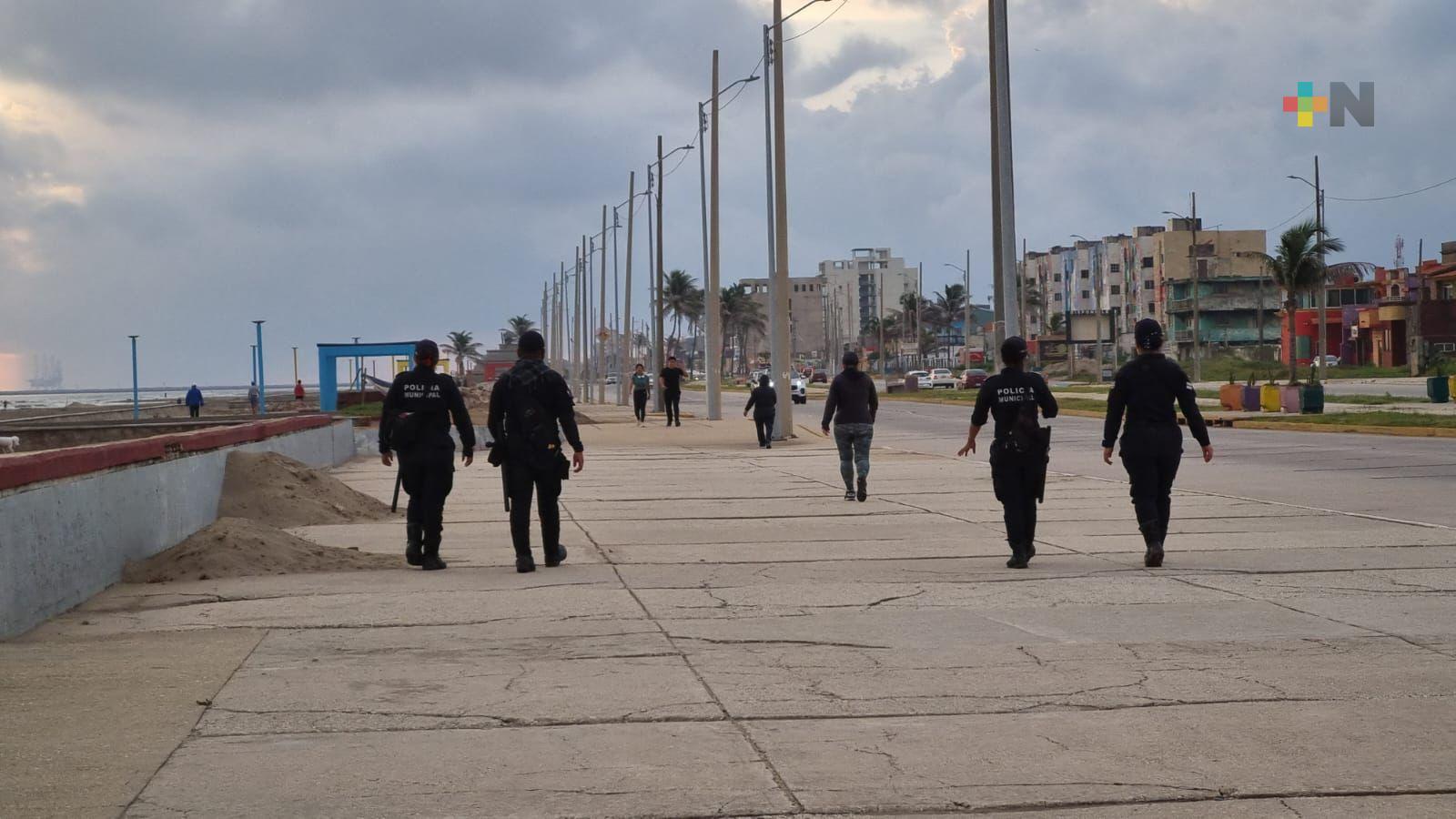 Policía municipal de Coatzacoalcos vigila malecón costero