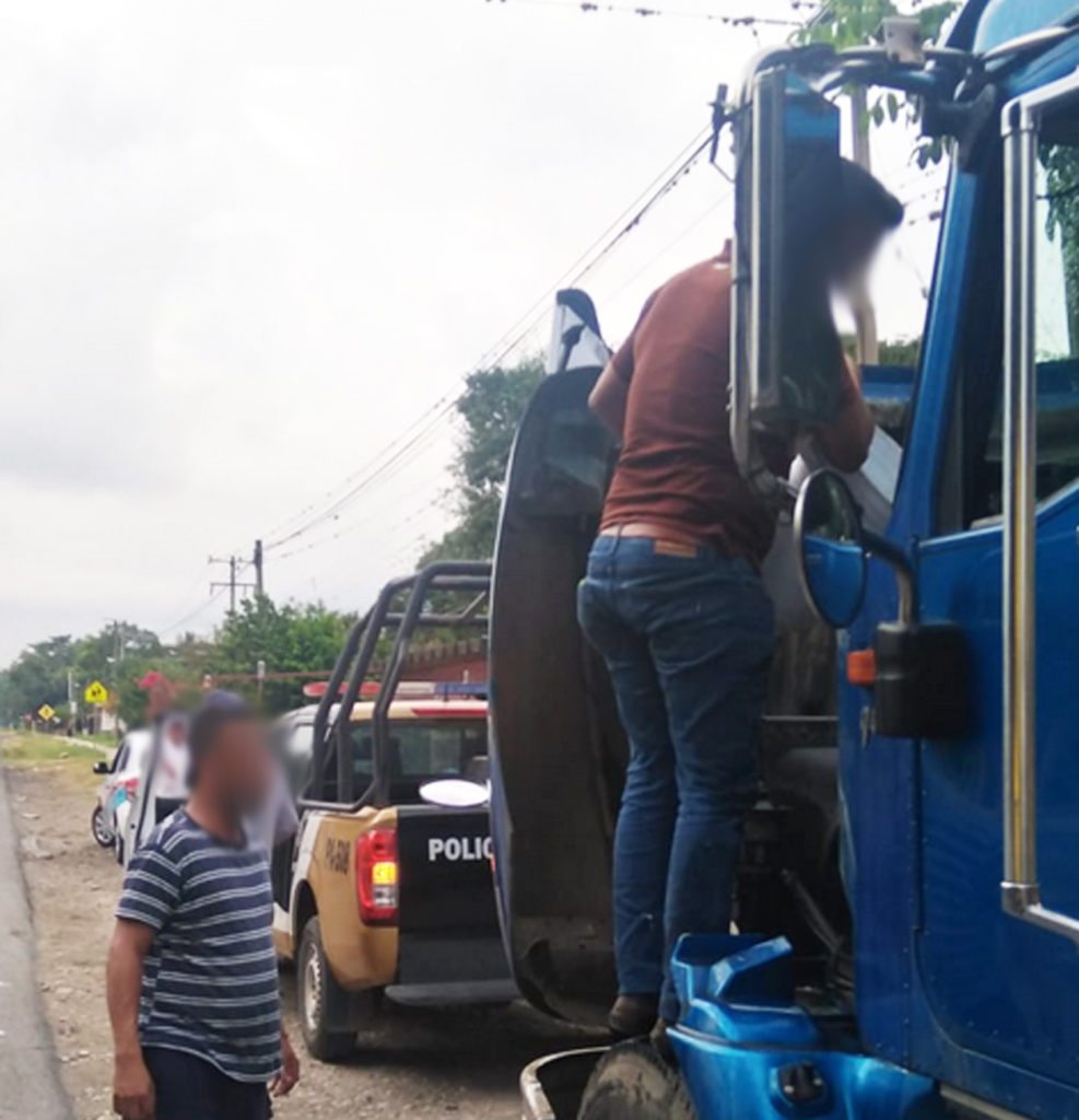 Al momento, del interior del tractocamión salió una persona del sexo masculino, quien solicitó insistentemente la ayuda de los uniformados, identificándose como Fernando “N” operador de la unidad de carga, que momentos antes, había sido sometido en compañía de una persona más, Cesar “N”, guardia custodio del tractocamión, mismo que fue despojado de un vehículo de la marca Nissan tipo March color blanco, con placas de circulación TNR096A, siendo estos obligados a meterse al camarote, quitándoles sus pertenencias; cabe señalar que la caja del tráiler estaba cargada con 35 toneladas de azúcar, además, a mención de ambas personas, los ocupantes de la camioneta que emprendieron la huida ya habían interceptado a otro tráiler más, ambos viajaban en convoy con las características del tractocamión marca Volvo color blanco igualmente cargado con azúcar y el mismo tonelaje.