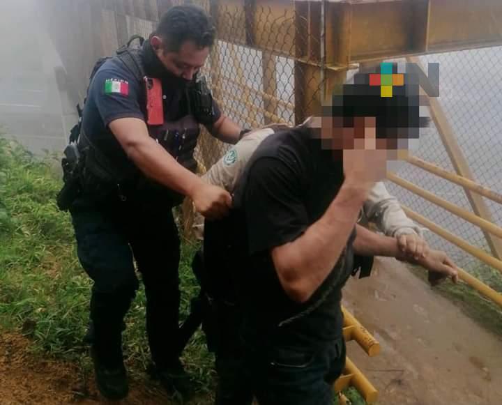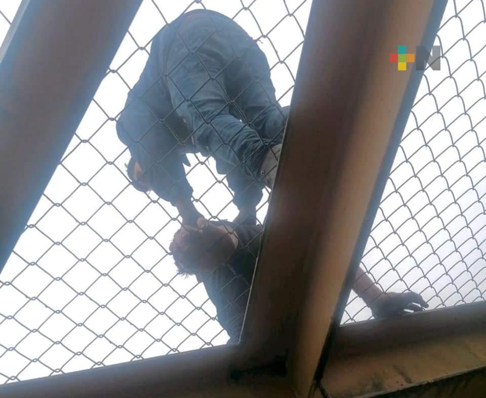 Xalapa, Ver.- La tarde de este viernes, elementos de la Secretaría de Seguridad Pública (SSP) evitaron que un joven se arrojara de un puente peatonal ubicado sobre la carretera Xalapa-Perote, a la altura del CETIS 134, en Banderilla.