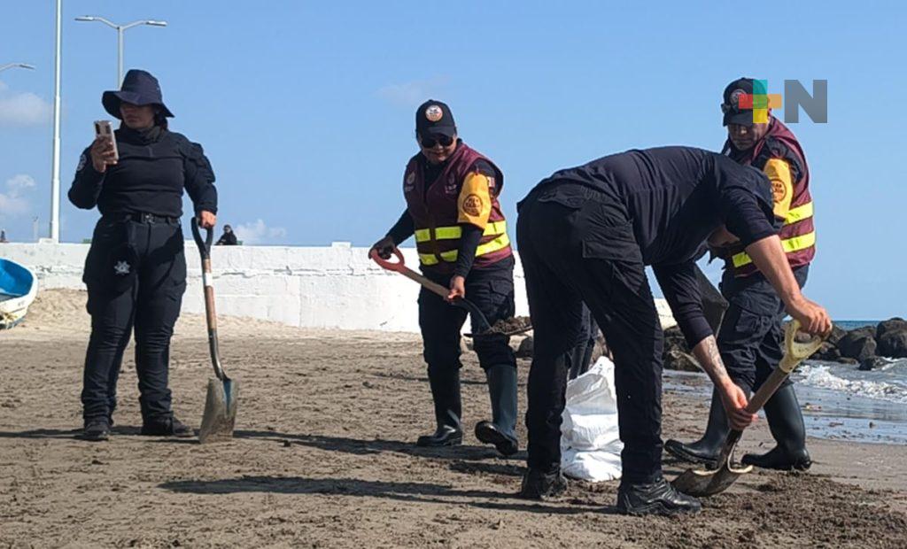 Policías estatales se suman a la limpieza de playas del puerto de Veracruz