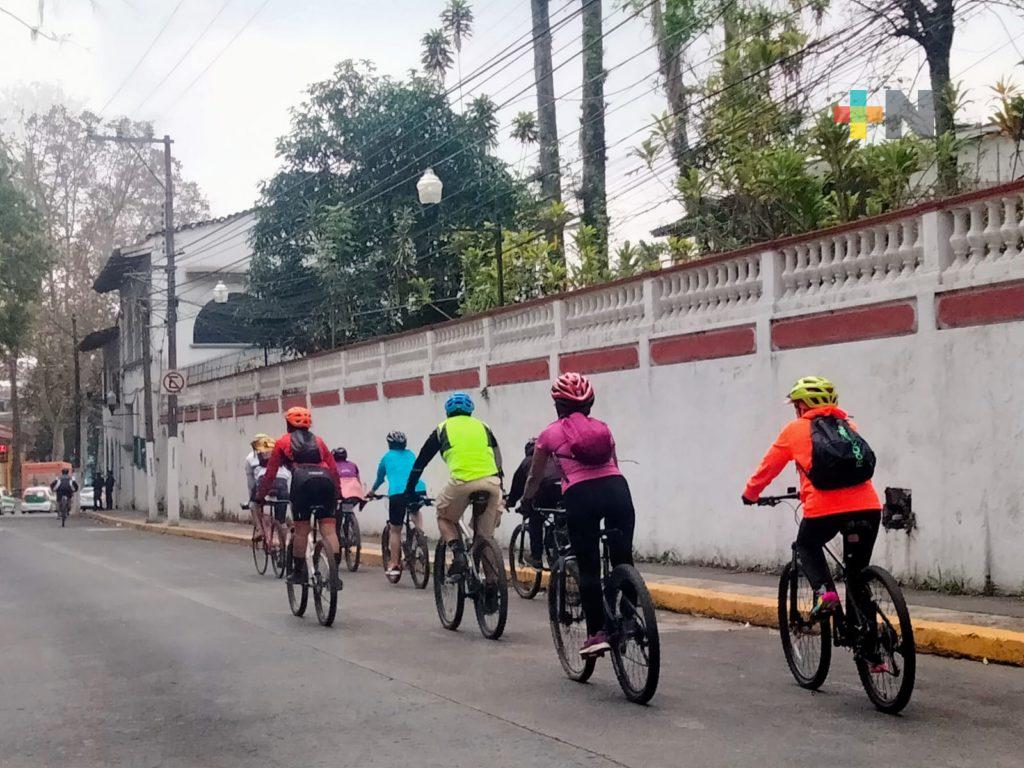 Xalapa, Ver.- Policías municipales de Xalapa resguardaron el recorrido de un grupo de personas de distintas edades que aprenden a desplazarse en bicicleta dentro de esta ciudad durante las rodadas universitarias.