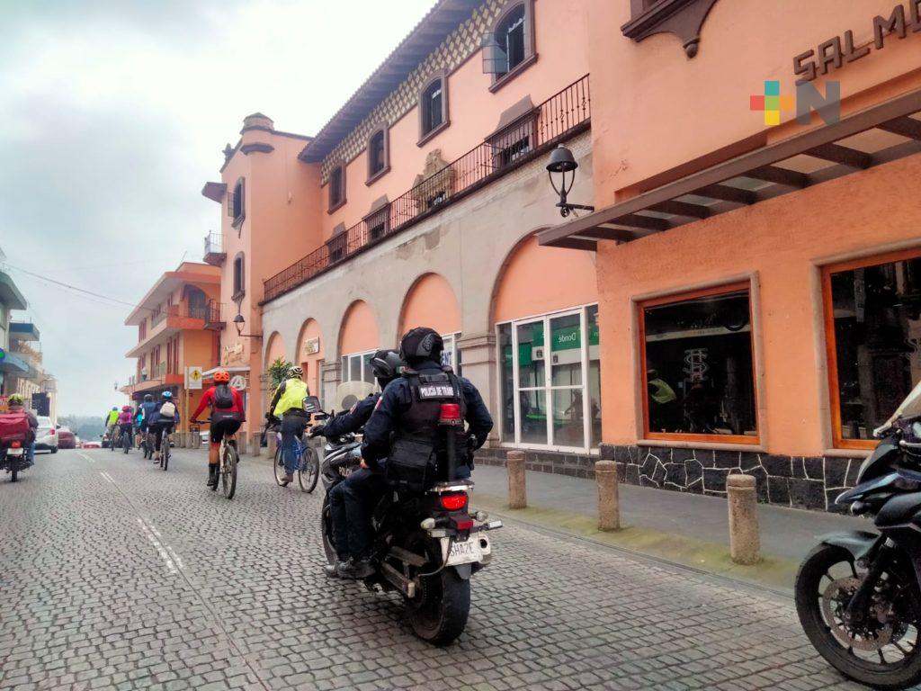 Policías municipales resguardan recorrido de ciclistas en Xalapa