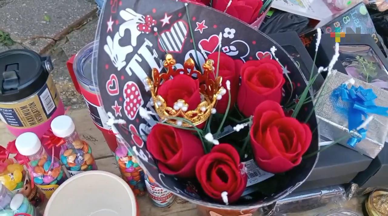Coatzacoalcos, Ver.- Comerciantes de productos alusivos al 14 de febrero se ubicaron en la calle Corregidora del primer cuadro de Coatzacoalcos.