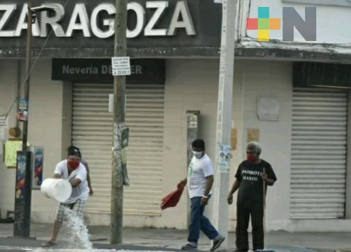 Los locatarios del mercado se dieron a la tarea de lavar con agua, jabón y cloro la zona donde cayó el cadáver, sin embargo exigieron a la funeraria que se haga cargo de la sanitización.