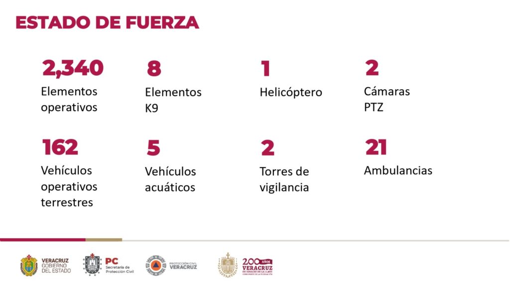 Las fuerzas de tarea incluyen a la Guardia Nacional, policías Estatal, Naval y municipales, el Centro Estatal de Control, Comando, Comunicaciones y Cómputo, las direcciones de Tránsito y Transporte, las secretarías de Marina y Salud, además de la Cruz Roja.